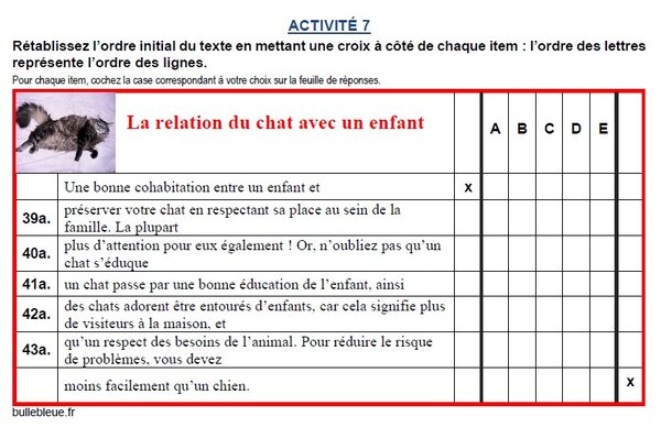 L’élève doit alors reconstruire la cohérence/cohésion du texte. Des césures sont placées tous les 60 caractères, par exemple.